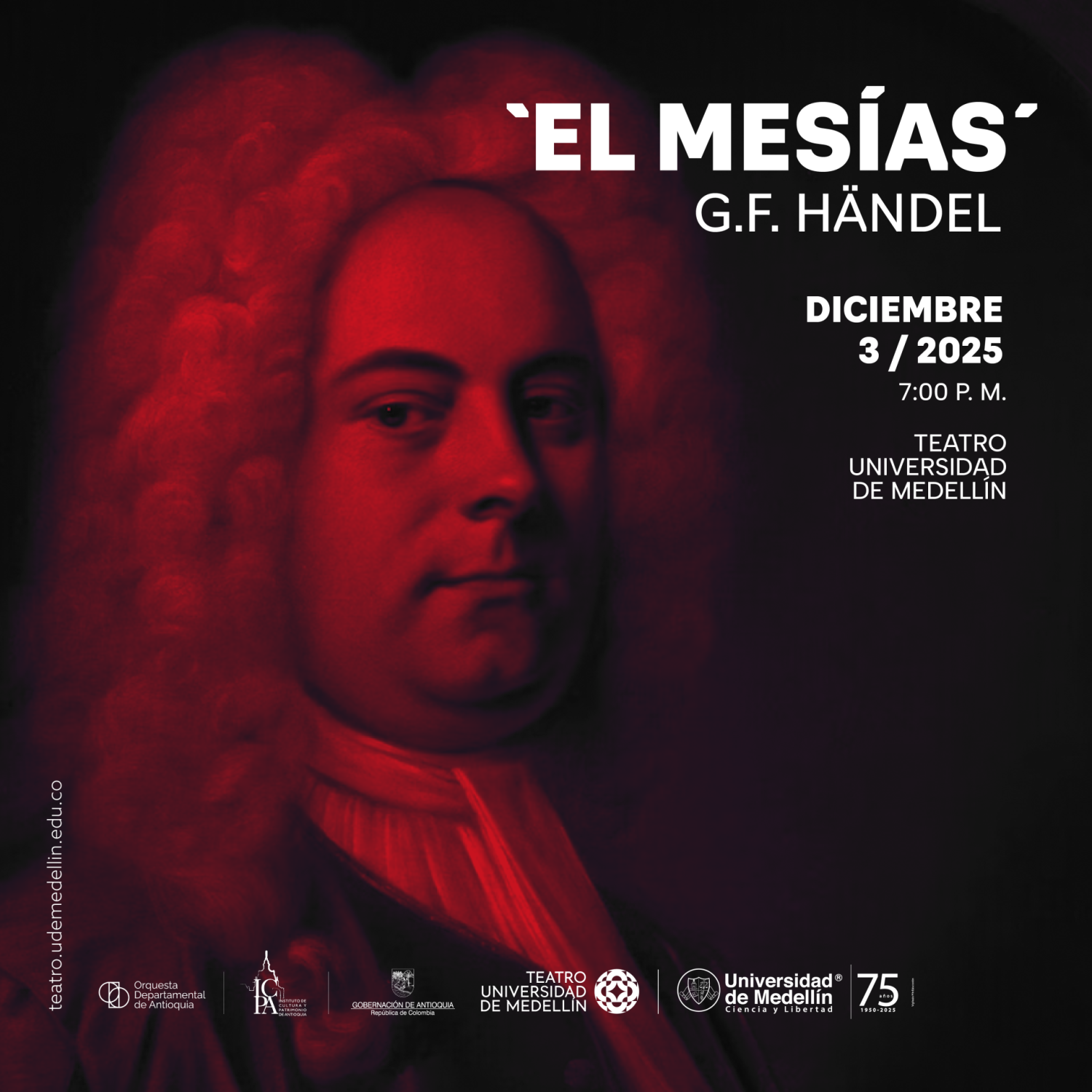 En el marco de la celebración de sus 75 años, la Universidad de Medellín presentará una edición especial del XXIV Festival de Villancicos, en alianza con la Orquesta Departamental de Antioquia y destacados coros de la ciudad. El concierto se llevará a cabo el 3 de diciembre a las 7:00 p. m. en el Teatro Gabriel Obregón Botero, con entrada libre mediante boletería. Bajo la dirección de Cecilia Espinoza, los solistas Lina López, Yennefer González, Juan Pérez y Alexis Trejos interpretarán, junto a la Orquesta y los coros de Cámara de la Universidad de Medellín, Coral Tomás Luis de Victoria y Tonos Humanos, la obra maestra El Mesías, del compositor Georg Friedrich Händel. Este célebre oratorio, creado en 1741, fusiona la grandeza del estilo barroco con un profundo mensaje espiritual sobre el nacimiento, la pasión y la resurrección de Cristo. Su icónico “Aleluya” ha trascendido el tiempo como símbolo universal de alegría y esperanza. Próximamente, la Universidad y el Teatro anunciarán los canales oficiales para adquirir las entradas gratuitas.